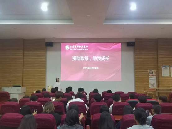 郭茹老师就中等职业国家资助相关政策进行宣讲,对中职国家助学金的申请流程、发放时间及资助标准等做了详细解读,对家庭经济困难学生认定标准进行细致的解释,切实将资助育人工作落到实处。