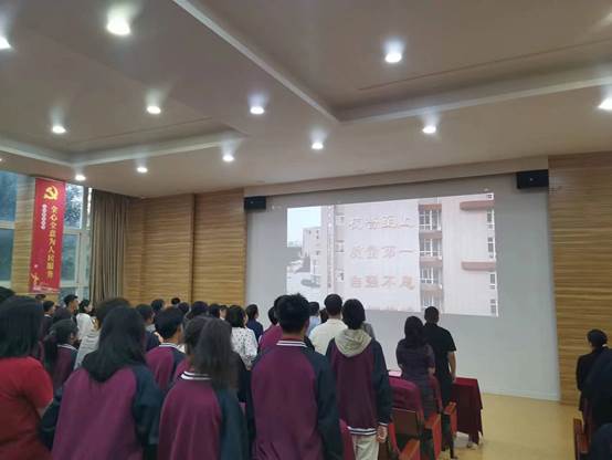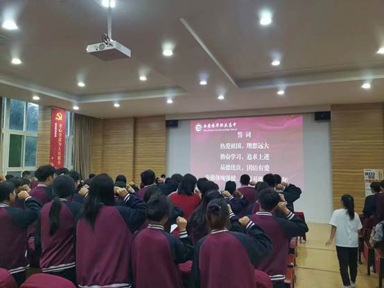全体新生进行宣誓:热爱祖国,理想远大,勤奋学习,追求上进,品德优良,团结有爱,争做体魄强健、性格开朗的好学生。
