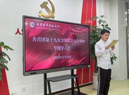 为深入贯彻落实共青团第十九次全国代表大会精神,引导团学干部传承红色基因、勇担青春使命,10月30日,我校团委召开了共青团十九大精神专题学习会,团委书记蔡国强及团学干部参会。