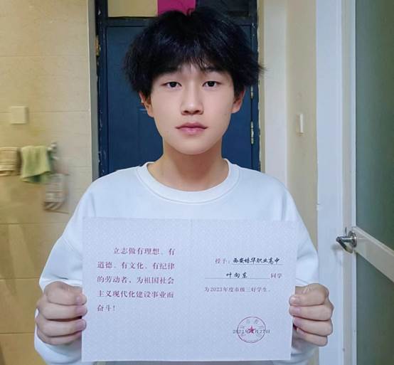 叶向东,共青团员,计算机应用211班语文课代表,校团委副书记,能够勇于承担职责使命,积极发挥团干担当,协助老师开展团学活动,综合表现优秀,曾荣获2023年西安市中职好学生、优秀共青团干部、优秀志愿者等荣誉称号。