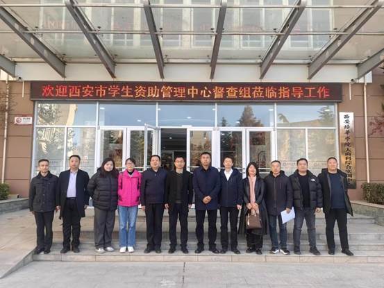 11月27日上午,西安市学生资助管理中心督查组组长缑明齐主任、成员马瑜、缪文桂、连森一行莅临我校检查指导工作,长安区学生资助管理中心郭育华主任、李治江副主任、资助专员吕同斌、郭倩、张小平、我校校长席小武、副校长罗永辉及相关科室负责人陪同检查。