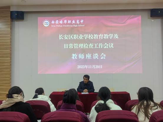 教育局孙永平老师对长安区职业学校教育教学及日常管理检查工作进行了安排部署,强调此次检查旨在督促和指导各职业学校规范教育教学管理,不断提高办学水平,持续推进学校各项工作稳步开展。