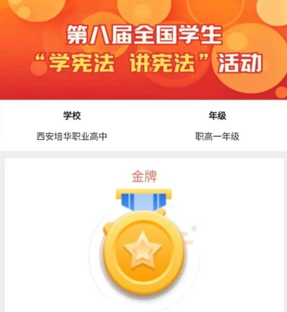 我校按照《陕西省教育厅办公室关于实施“宪法卫士”2023年行动计划的通知》要求组织学生开展线上答题活动,经过严密组织、认真落实,我校学生参与率和学习率达到100%,平均成绩为85.34。
