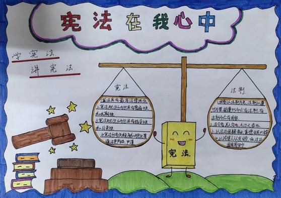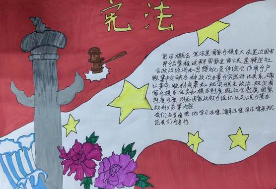 我校组织学生开展主题为“学习宪法知识 建设法治校园”的作品创作活动。同学们积极报名、踊跃参与,创作出了许多主题明确、特点鲜明的精美作品,以实际行动发扬宪法精神,争当时代青年。