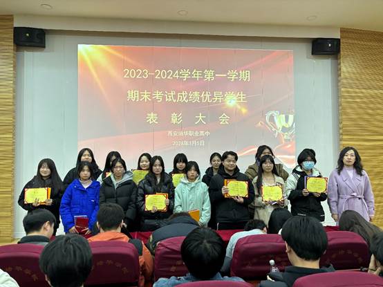 副校长宣读了《西安培华职业高中关于2023-2024学年第一学期期末考试学习成绩优异学生表彰的决定》,对刘浩楠、韩婷等53名学生进行表彰奖励。希望受到表彰的同学能够珍惜荣誉,戒骄戒躁,锐意进取,继续发挥示范引领作用,在今后的学习生活中再创佳绩。