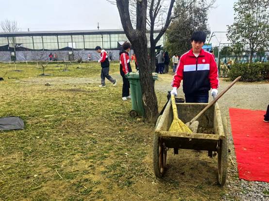 同学们来到园区仓库领取了劳动工具,在工作人员的安排下开始了园区的卫生清洁工作。同学们将杂树锯掉,并为花草修剪枝芽,用小推车推来砖块,为临时休息点铺砖,改善流浪动物的居住环境。并将公共休息区的桌椅、冰箱柜和药品柜擦拭干净,将垃圾打包带走并投放至指定位置,为改善园区环境贡献自己的力量。