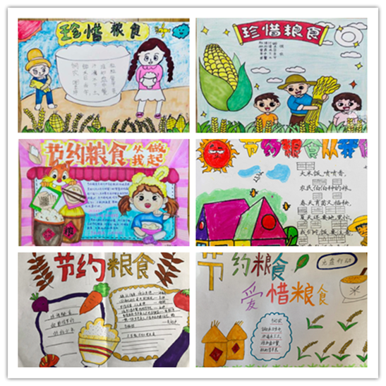 我校组织学生围绕“节约粮食 从我做起”主题开展手抄报等作品创作,通过亲身参与的方式增进同学们对粮食的了解,感受播种粮食的辛苦与不易,通过画笔表达自己对于珍惜粮食的决心。