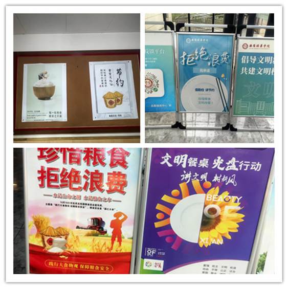 学校通过宣传栏张贴“节约粮食 拒绝浪费”主题海报,在食堂设置“文明餐桌 光盘行动”提示展牌,通过各种方式加强活动宣传力度,营造良好的活动氛围,树立浪费可耻、节约为荣的正确观念。