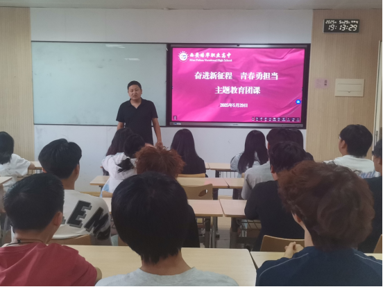 为引导学生继承革命传统,弘扬革命精神,传承红色基因,争做新时代的合格接班人。5月29日,校团委组织开展了“奋进新征程 青春勇担当”主题教育团课,团委书记蔡国强、学生副书记王旭阳及全体团员参加。