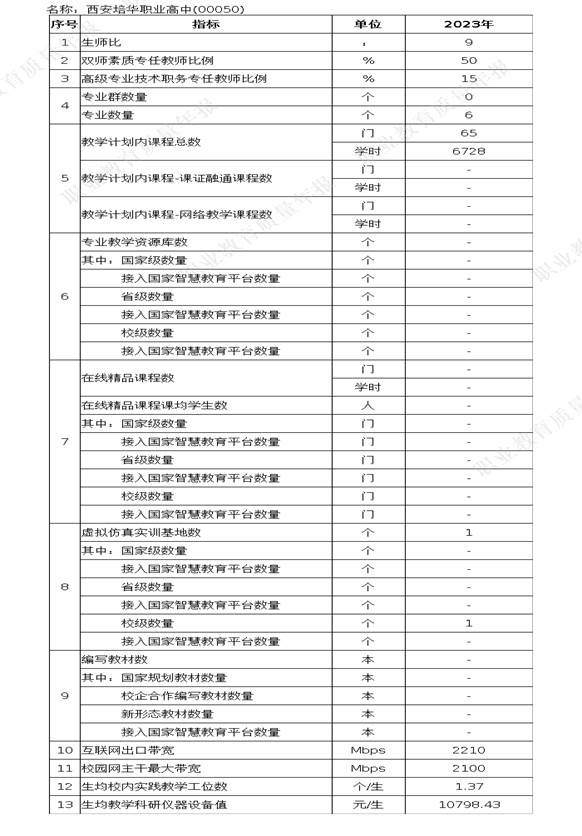 西安培华职业高中是经教育主管部门批准成立的一所全日制民办职业高中,学校依托西安培华学院丰富的教育教学资源,以立德树人为根本任务,坚持“以人为本、以德为先”的办学理念,培养德智体美劳全面发展的中等职业技能人才。学校占地面积67.2亩,建筑面积4.32万平方米,多媒体教室35间,计算机教室3间,实验实训室9间,藏书量6.8万册,阅览室300座。专用教室、实验实训室、图书馆、运动场、餐厅等场所,能够满足在校师生的学习和生活需求。