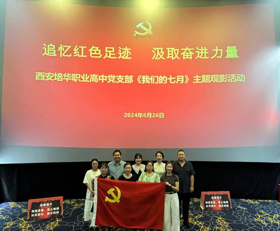 为深入学习贯彻习近平新时代中国特色社会主义思想和党的二十大精神,认真落实习近平总书记关于“用党的历史教育党员、教育干部、教育群众尤其是教育青少年”重要指示精神,6月26日,西安培华职业高中党支部组织开展了红色观影活动。