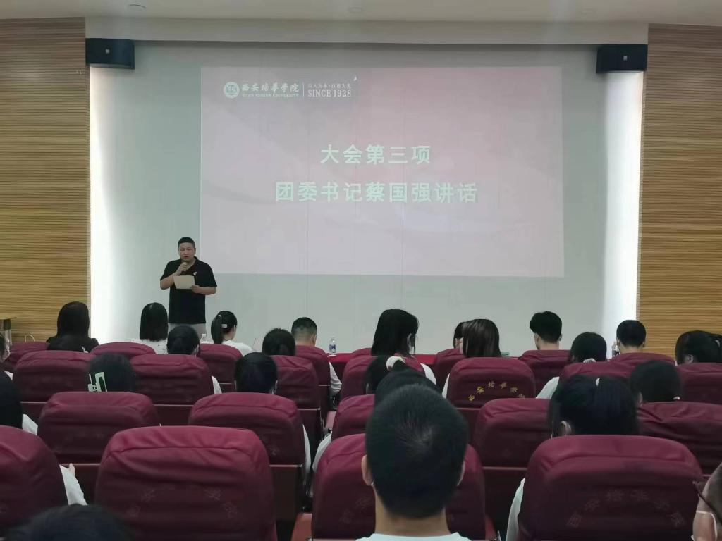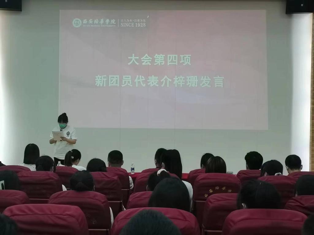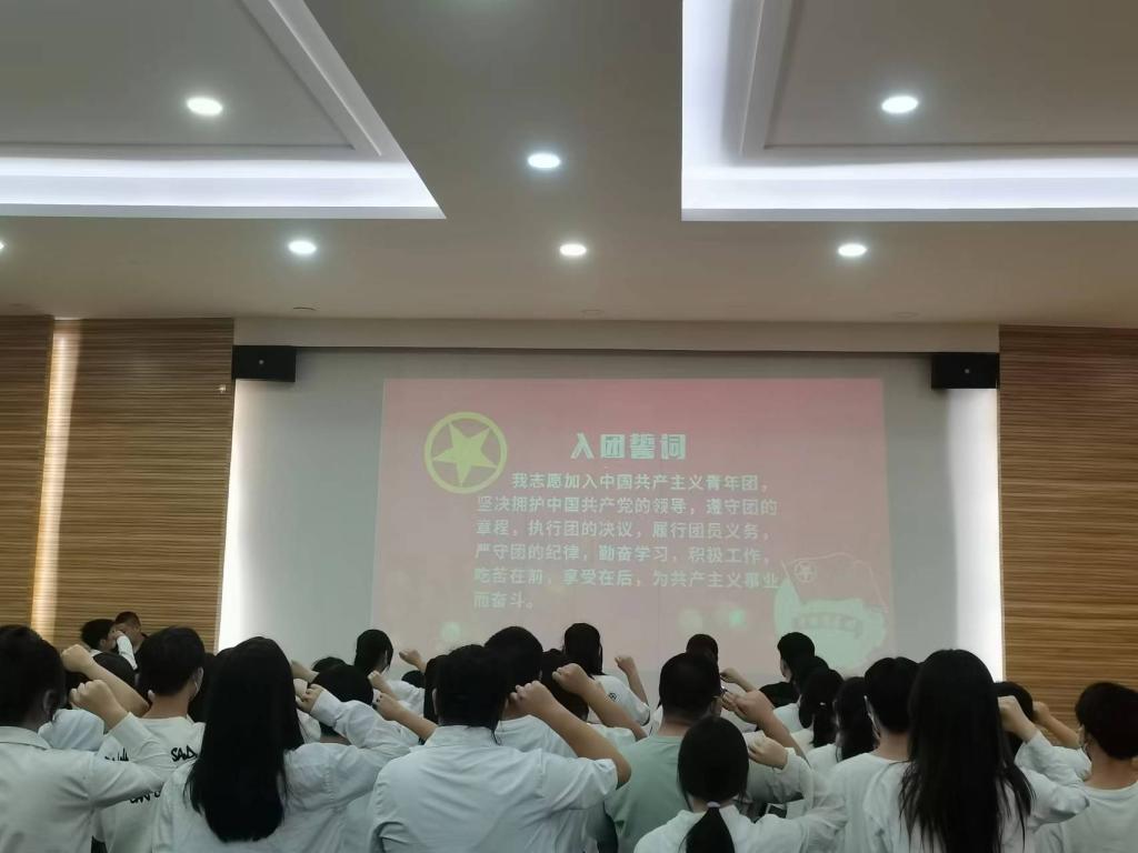 大会伴随着庄严嘹亮的共青团歌正式开始,团委书记蔡国强宣读了新团员名单,对新团员的加入表示祝贺和欢迎,希望新团员们树立远大抱负和坚定的理想信念,发挥好示范引领和模范带头作用,在学习和生活上为同学们树立良好的榜样,努力成为德智体美劳全面发展的时代青年。