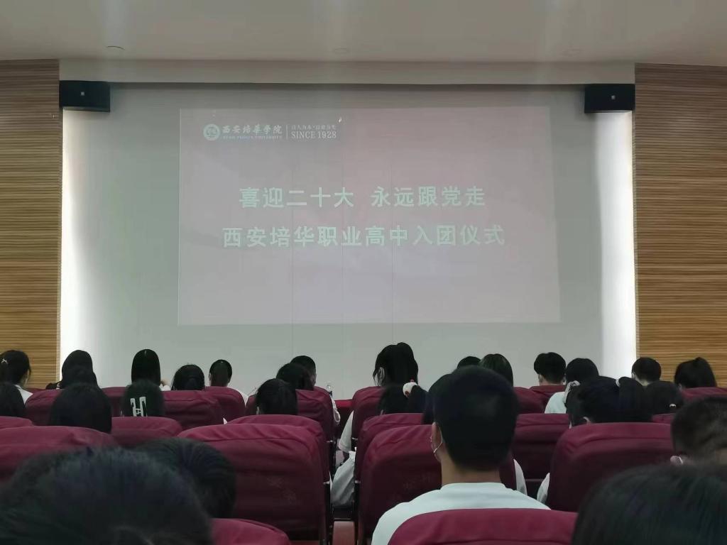 为引导青少年厚植爱党爱国情怀,增强共青团员的荣誉感和使命感,提升团组织的凝聚力和战斗力,西安培华职业高中在阶梯教室举行了以“喜迎二十大 永远跟党走”为主题的新团员入团仪式,大会由团委书记蔡国强主持,党支部书记罗永辉及全体班主任出席,新入团员及学生代表参会。