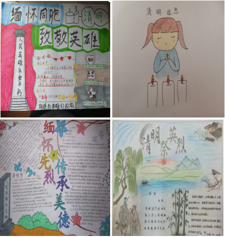 在我校团委的统一组织下,同学们纷纷进行手抄报等形式的创作,通过文艺作品表达对先烈英雄的祭奠和哀思,加强学生的国家荣辱观和民族自豪感,引领学生践行爱国主义精神和社会主义核心价值观,进一加强学生的爱党爱国教育,坚定听党话、跟党走的信念和决心,为成为社会主义合格建设者和可靠接班人而努力奋斗。