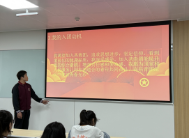 同学们结合个人学习和实践经历,通过课件与视频的方式,重点围绕个人简介、对共青团的认识、入团动机、学习成绩、社会实践与志愿服务经历等方面进行阐述充分彰显出新时代青年坚定的政治素质,勤学善思的进取精神与服务社会的责任担当