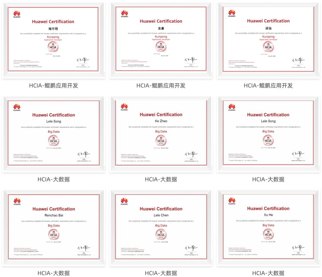 部分毕业生由于在本科学习期间积累了丰富的项目开发经验,已创办了自己的企业,目前运营状况良好。围绕职业岗位要求,本专业学生还积极参加各类职业技能培训及资格证考试。部分学生取得了网络工程师、网络信息安全二级证书等资格证书,以及HCIA-AI(华为认证ICT工程师-人工智能)、HCIA-Kunpeng Application Developer(华为认证ICT工程师-鲲鹏应用开发)、HCIA-Intelligent Computing(华为认证ICT工程师-智能计算)等职业资格证书,有效提升了就业能力。