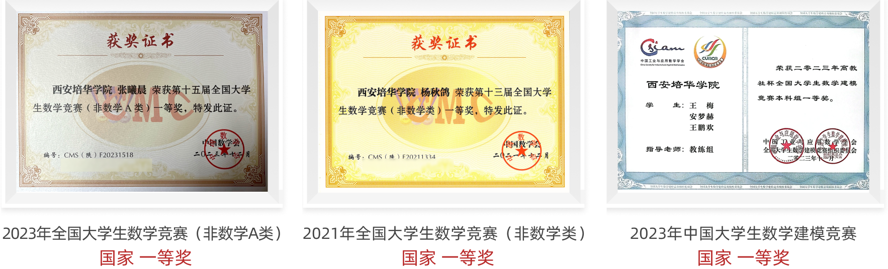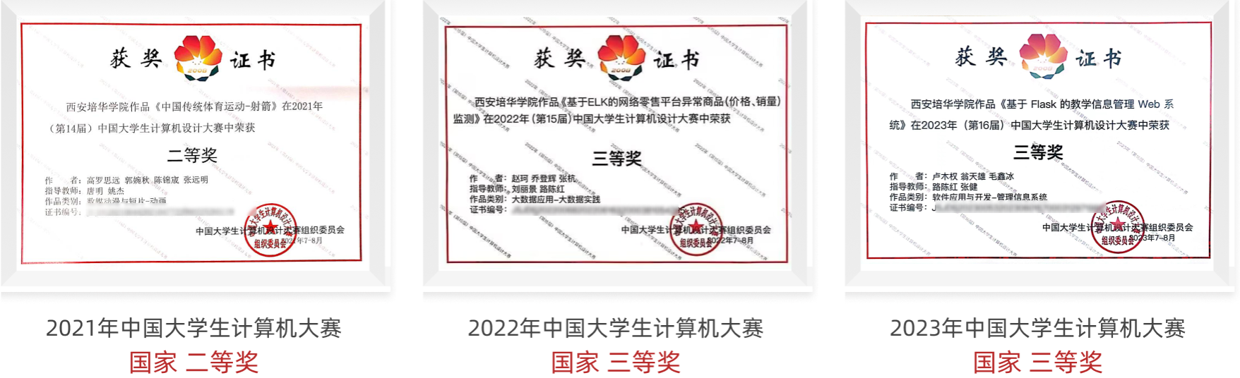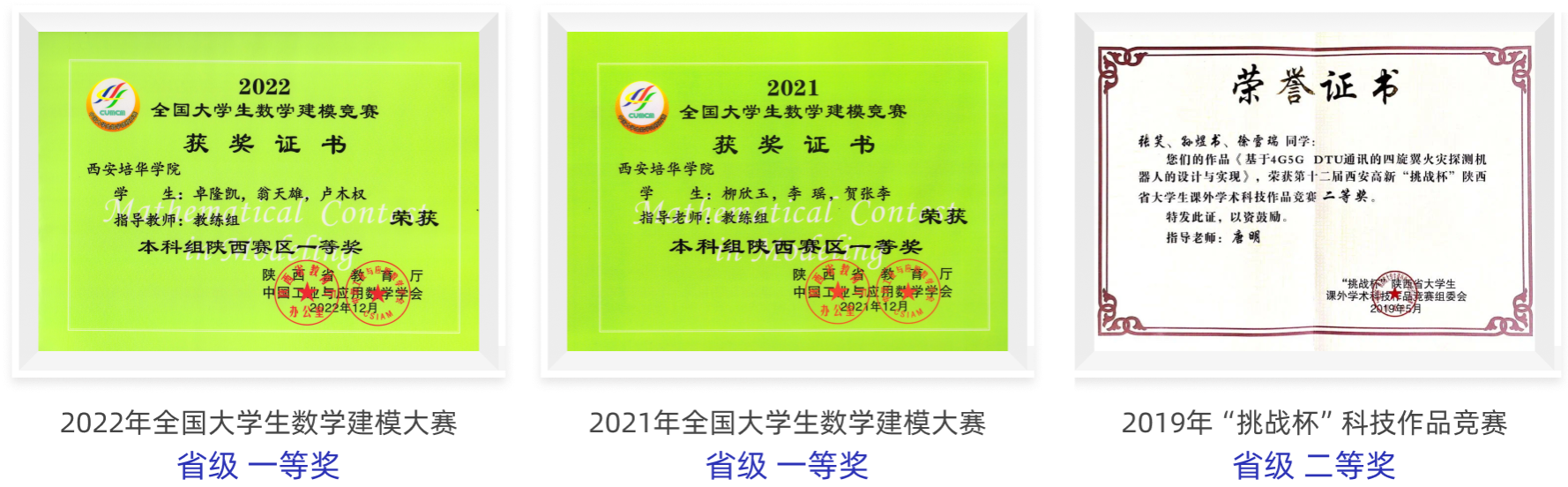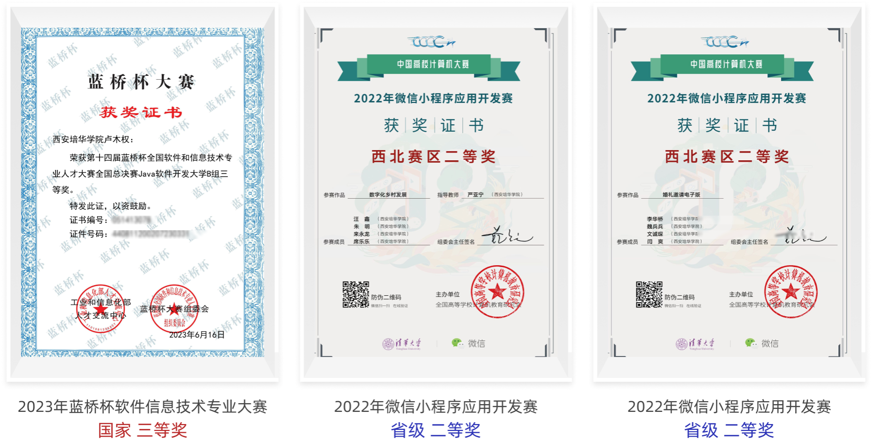 本专业注重学生实践和交流,为学生搭建交流创新平台,与一流大学同台竞技,摘金夺银,屡获殊荣,荣获20余项国家奖、80余项省级奖。通过组织学生参加各类竞赛,如中国大学生计算机设计大赛、蓝桥杯全国软件与信息技术专业人才大赛、中国大学生服务外包创新创业大赛、中国互联网+大学生创新创业大赛、微信小程序、挑战杯、全国大学生数学建模竞赛、全国大学生数学竞赛、华为中国大学生ICT大赛等各类学科竞赛和科技创新竞赛活动,以赛促练促学,提升专业学习效果,使课内课外紧密结合,注重应用能力、工程实践和创新思维的培养,全面提升个人能力、团队协调合作能力。