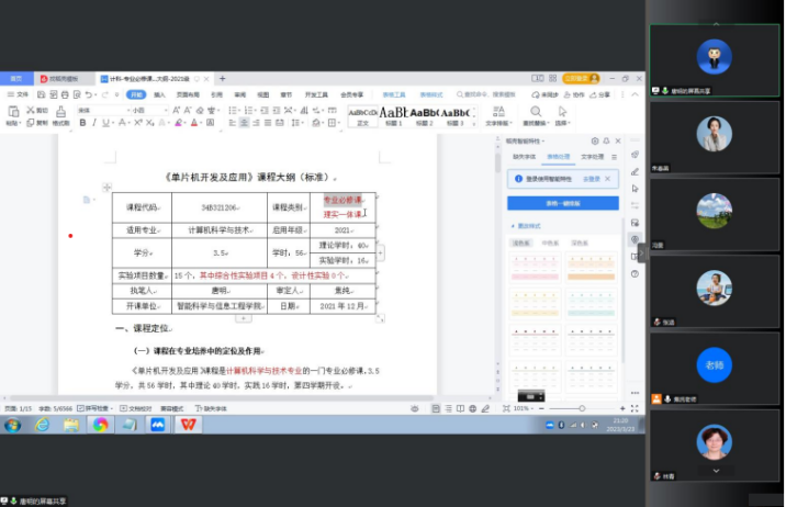 2023年3月23日,为了更好地推进本科人才培养的成效,计算机系举行2021级计算机科学与技术和软件工程专业课程大纲研讨会。会议由焦纯主任主持,全体计算机系教师参加,共同探讨和解读课程大纲在人才培养中的重要性和严谨性。