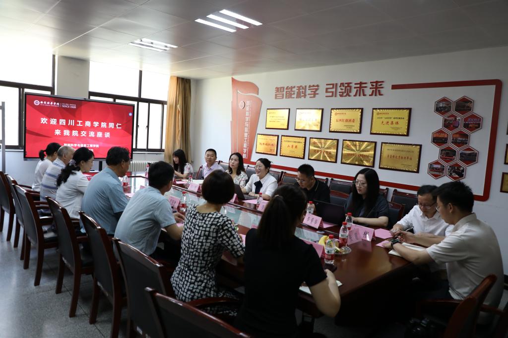 程国建院长首先对四川工商学院计算机学院院长肖利群一行的到来表示热烈欢迎,并从教育教学、师资队伍、办学特色等方面介绍了智能科学与信息工程学院的基本情况、专业实践课程的开展模式和专业学科竞赛的开展情况,同时还分享了我院近年来在教学改革、校企合作等方面取得的一系列成果和经验。