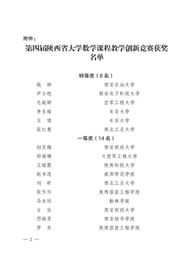 2024 年 9 月 20 日,根据陕西省教科文卫体工会委员会、陕西省数学学会发布的第四届陕西省大学数学课程教学创新竞赛获奖文件获知,我校智能科学与工程学院基础系数学教研室邢瑞芳副教授斩获竞赛一等奖,我校为同类院校唯一获得一等奖的院校。