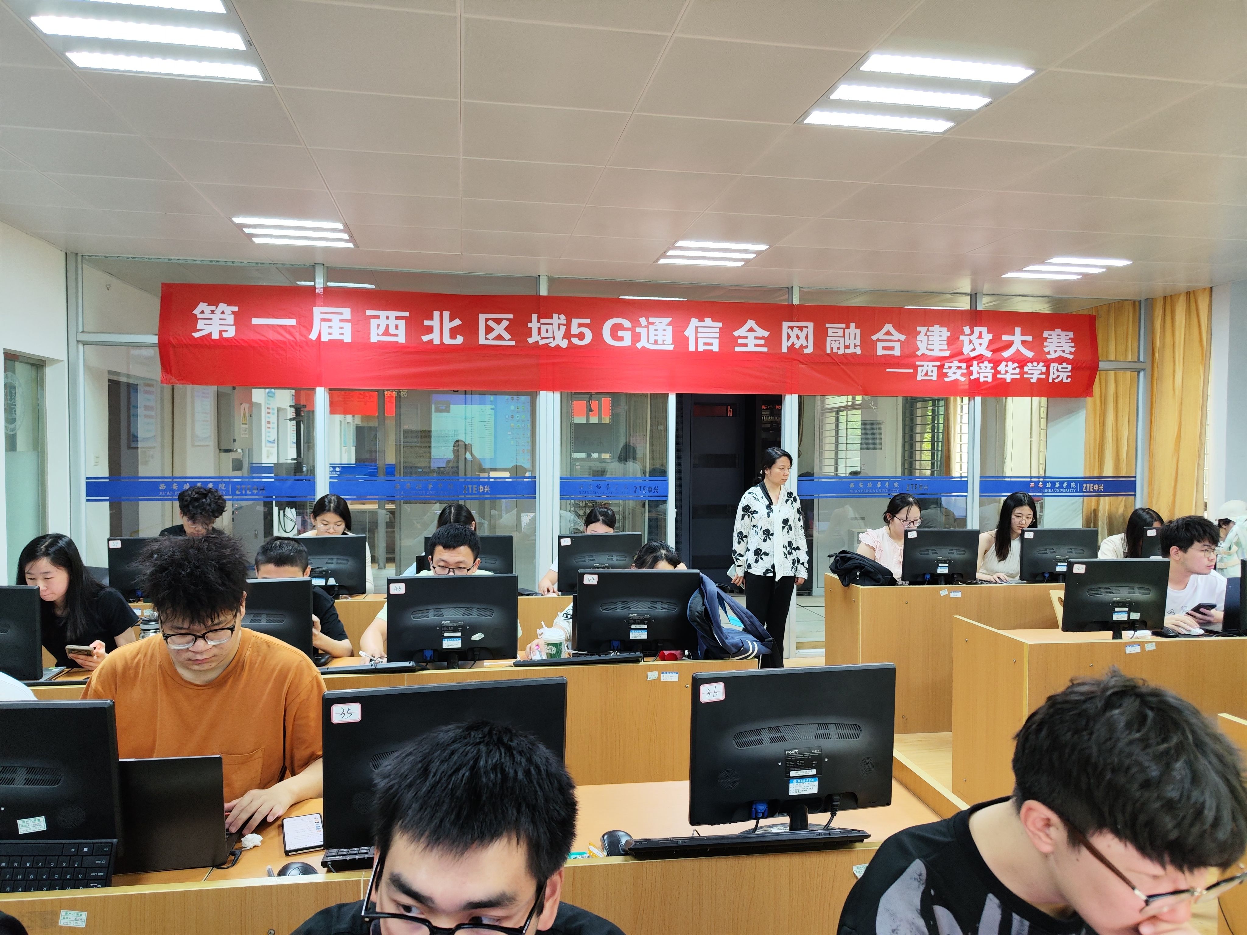 第一届西北区域5G通信全网融合大赛西安培华学院赛点于2025年5月17日8:30到12:00在3116举行。本次大赛是由陕西省通信学会主办,西安科技大学通信与信息工程学院、西安理工大学自动化与信息工程学院联合承办,南京柯姆威公司提供仿真平台支持。有西北区域的西安科技大学、西安工业大学、西安培华学院等20多所高校参加。