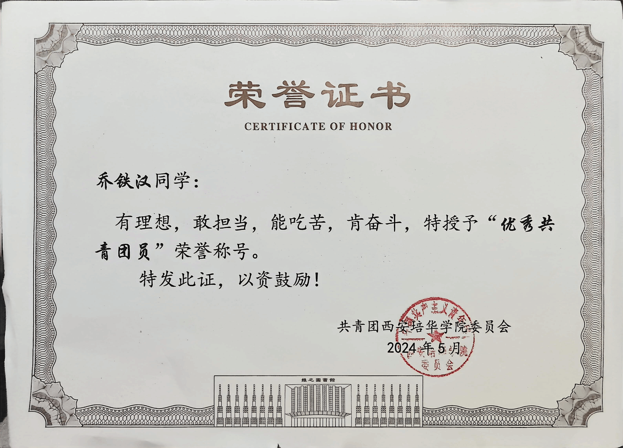 学生第五党支部的党员同学,坚定理想信念,积极参与党纪学习教育等党建活动,获评“优秀学习笔记”“红色先锋”。学习上,他深耕计算机科学与技术专业,成绩稳居专业前5%,荣获校级二等奖学金,斩获全国人工智能应用创新大赛陕西赛区二等奖等多项竞赛荣誉,获软件著作权及多项专业技能认证。工作中,他担任班级心理委员,助力学院心理健康教育工作,曾获评“进步工作者”,以全面发展的综合素质展现了新时代大学生党员的良好风貌。