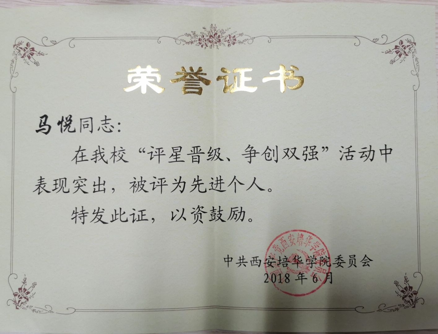 马悦,中共党员,现任我院教学科研干事,教工党支部组织委员。她坚决拥护党和国家的各项方针政策,政治思想素质过硬,认真贯彻执行国家和学校的高等教育办学思想。在生活中,自觉模范遵守党纪国法和校纪校规,无任何违纪现象。