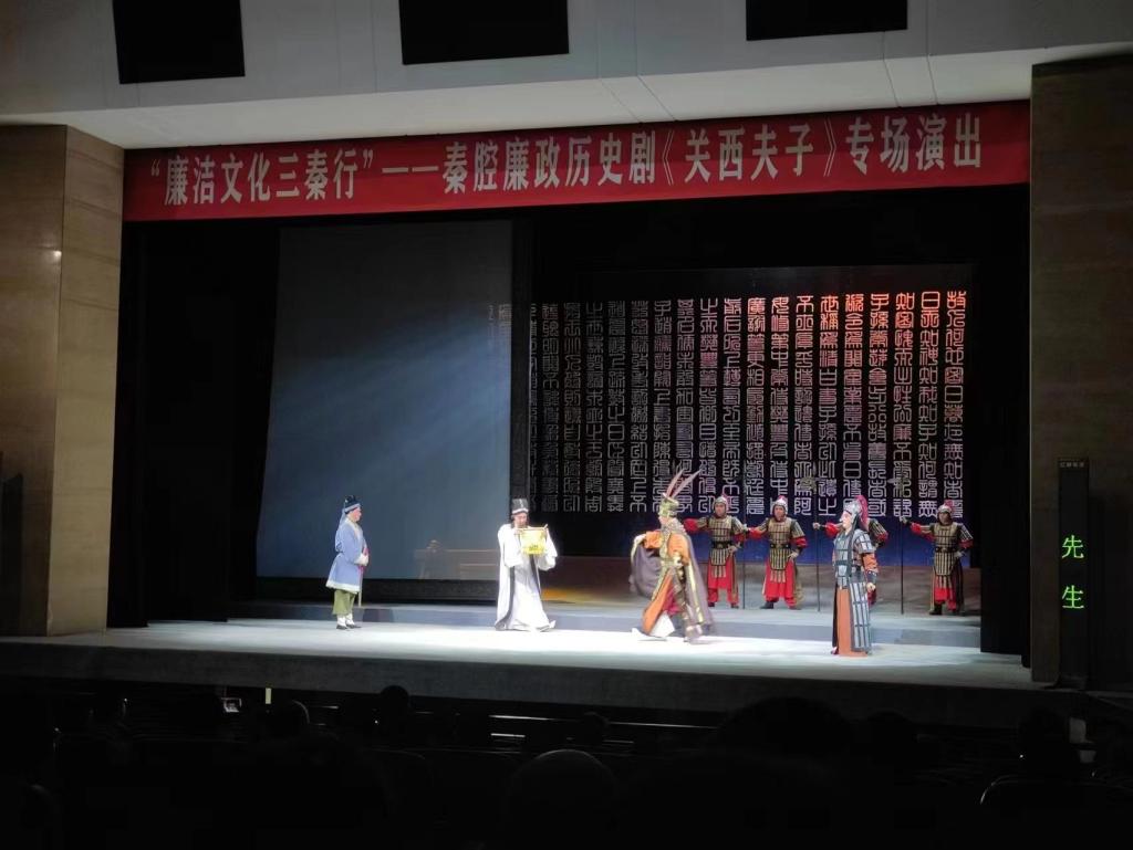 为全面落实《关于加强新时代廉洁文化建设的意见》,由陕西省纪委监委、陕西省文化和旅游厅联合举办的“廉洁文化三秦行”新编秦腔廉政历史剧《关西夫子》专场演出在陕西省戏曲研究院剧场开演。2022年2月16日,智能科学与信息工程学院“双带头人”工作室组织党员观看秦腔廉政历史剧《关西夫子》。