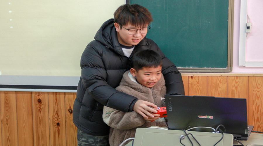 梁越同学带领学生体验3D打印技术与游戏手柄,同时讲解其中所运用的原理,使得孩子们能够通过简单的编程,实现手柄与游戏之间的互动,激发孩子们对科技的兴趣,培养他们的创新思维和实践能力。