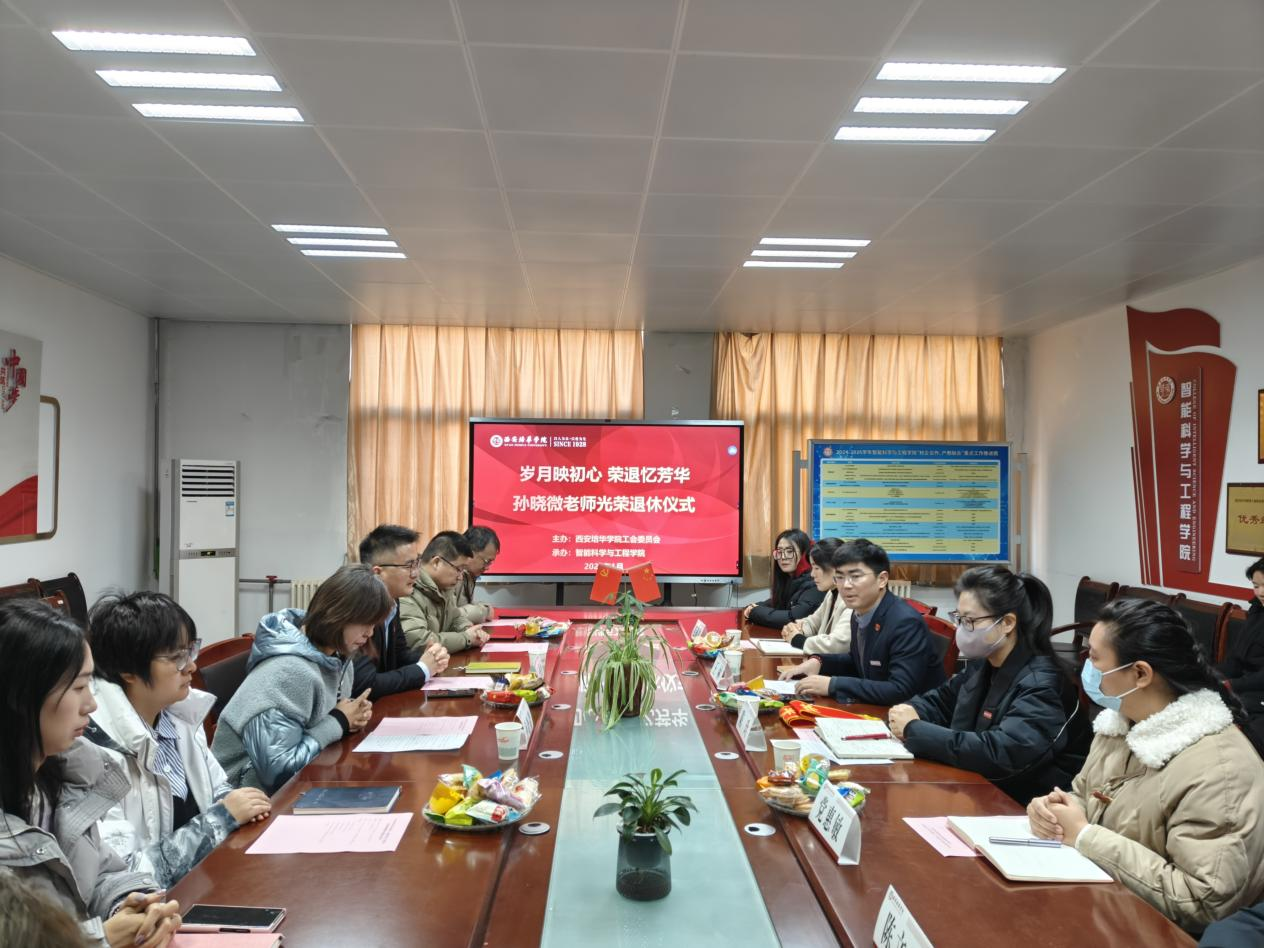 为深入学习贯彻全国教育大会精神,弘扬西安培华学院尊师重教的优良传统,1月15日,智能科学与工程学院在育英楼3204会议室隆重举行“岁月映初心 荣休忆芳华”荣休仪式,向为学院奉献多年的荣休老师孙晓微表达崇高敬意与美好祝福。校监事会主席、纪委书记、工会主席兼党工部、组织部、统战部部长陈玲、校工会办公室负责人党惠敏、院领导班子及教职工代表出席了仪式。仪式由学院党委书记兼行政副院长王林主持。