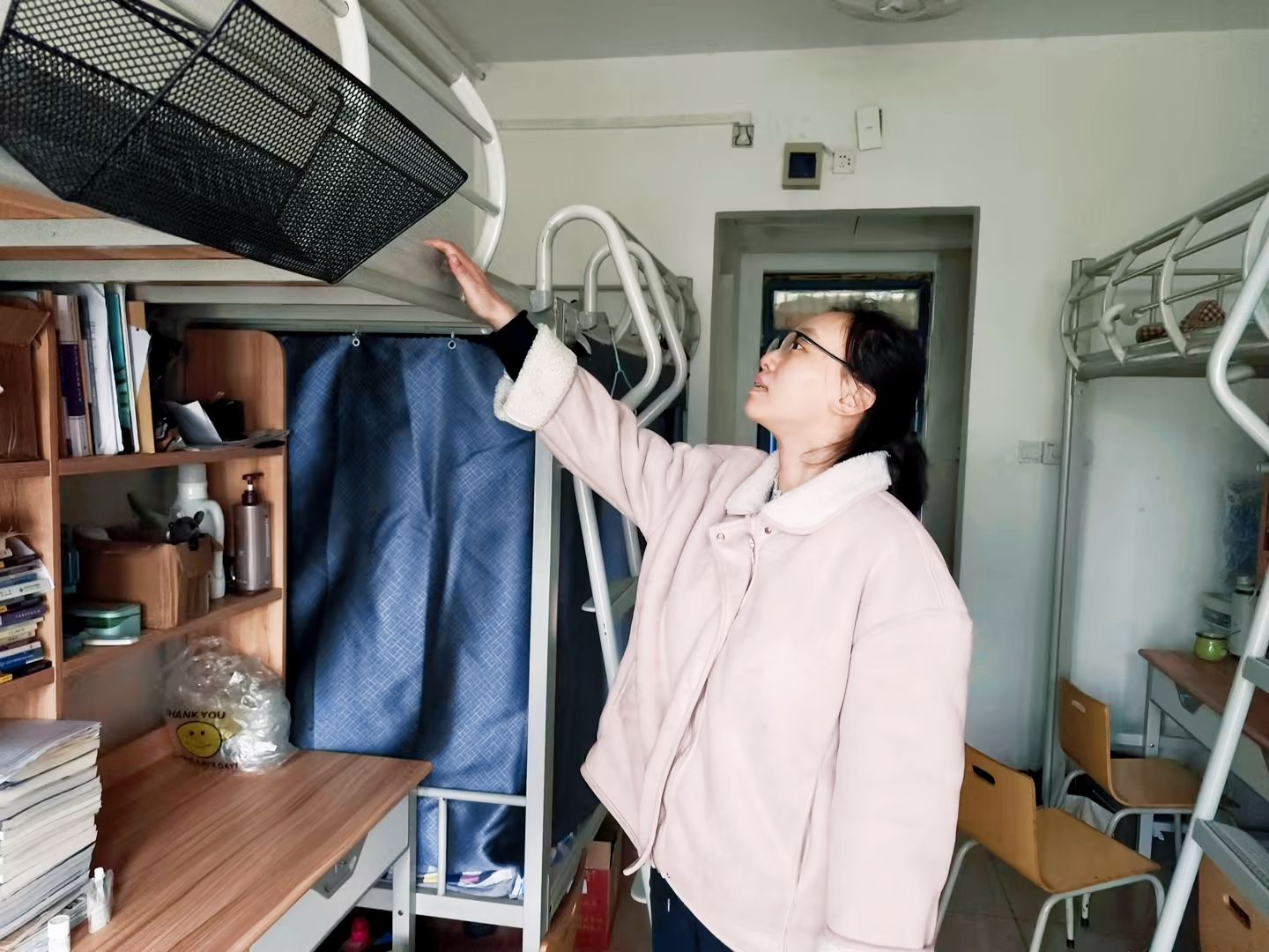 在学院领导的带领下,由辅导员组成的“暖心小分队”分为多组,对学院学生社区实施了“地毯式”健康检查。从天花板的墙角线至洗手台的水龙头,从阳台门窗的锁扣到暖气片的接口,教师们俯身查验暖气是否渗漏,伸手测试插座是否通电,甚至细致地摇晃每一张床铺的护栏,确保无一设施“带病运行”。