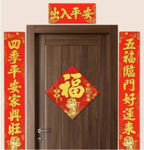 每逢春节,无论城市还是农村,家家户户都要挑漂亮的红春联贴于门上,辞旧迎新,增加喜庆的节日气氛。春联的另一来源是春贴,古人在立春日多贴“宜春”二字,后渐渐发展为春联,表达了中国劳动人民一种避邪除灾、迎祥纳福的美好愿望。据说这一习俗起于宋代,在明代开始盛行。