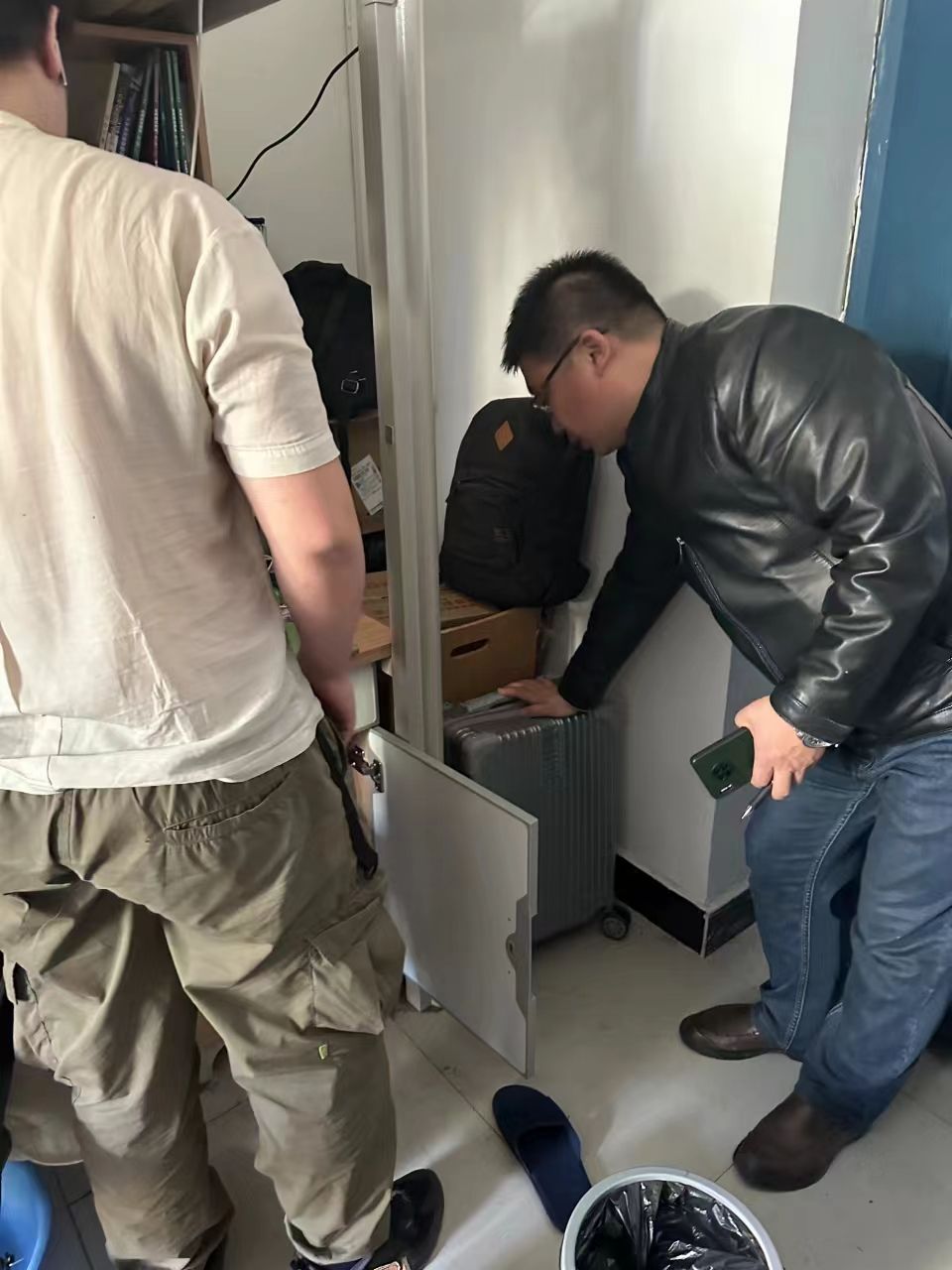 在检查过程中,检查小组针对宿舍内可能存在的安全隐患进行了逐一排查,重点检查了违禁电器、消防设施、门窗安全等方面。同时,还对宿舍的卫生状况进行了整治,对卫生死角进行了彻底清理。