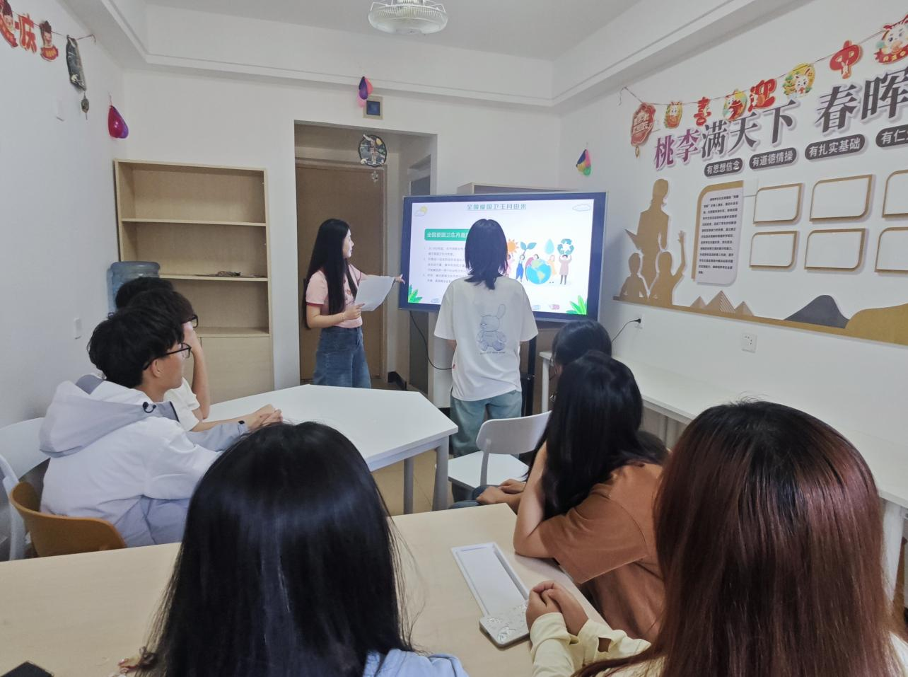为了提高学生的卫生意识,促进健康的生活方式,改善环境卫生条件,智能科学与工程学院仵怡欣老师在十三号公寓楼辅导员工作室开展了“爱国卫生劳动教育”活动,结合日常工作中发现的卫生问题,向同学们讲述了健康生活的方式和习惯,旨在弘扬爱国精神和提高同学们的健康水平,共同创造一个文明、卫生、健康的校园环境。