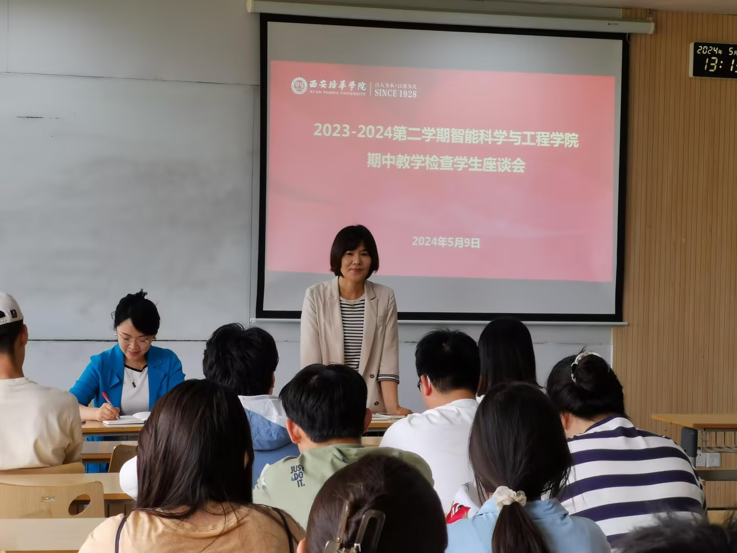 为了全面了解本学期的教学运行情况,加强日常教学管理,及时发现和解决教学过程中存在的问题,于2024年5月9日中午12:30在学院会议室召开了期中教学检查师生座谈会。学院常务副院长成立、副院长毛莉君、各系主任、教学干事及师生代表参加了座谈会。会议由副院长毛莉君主持。