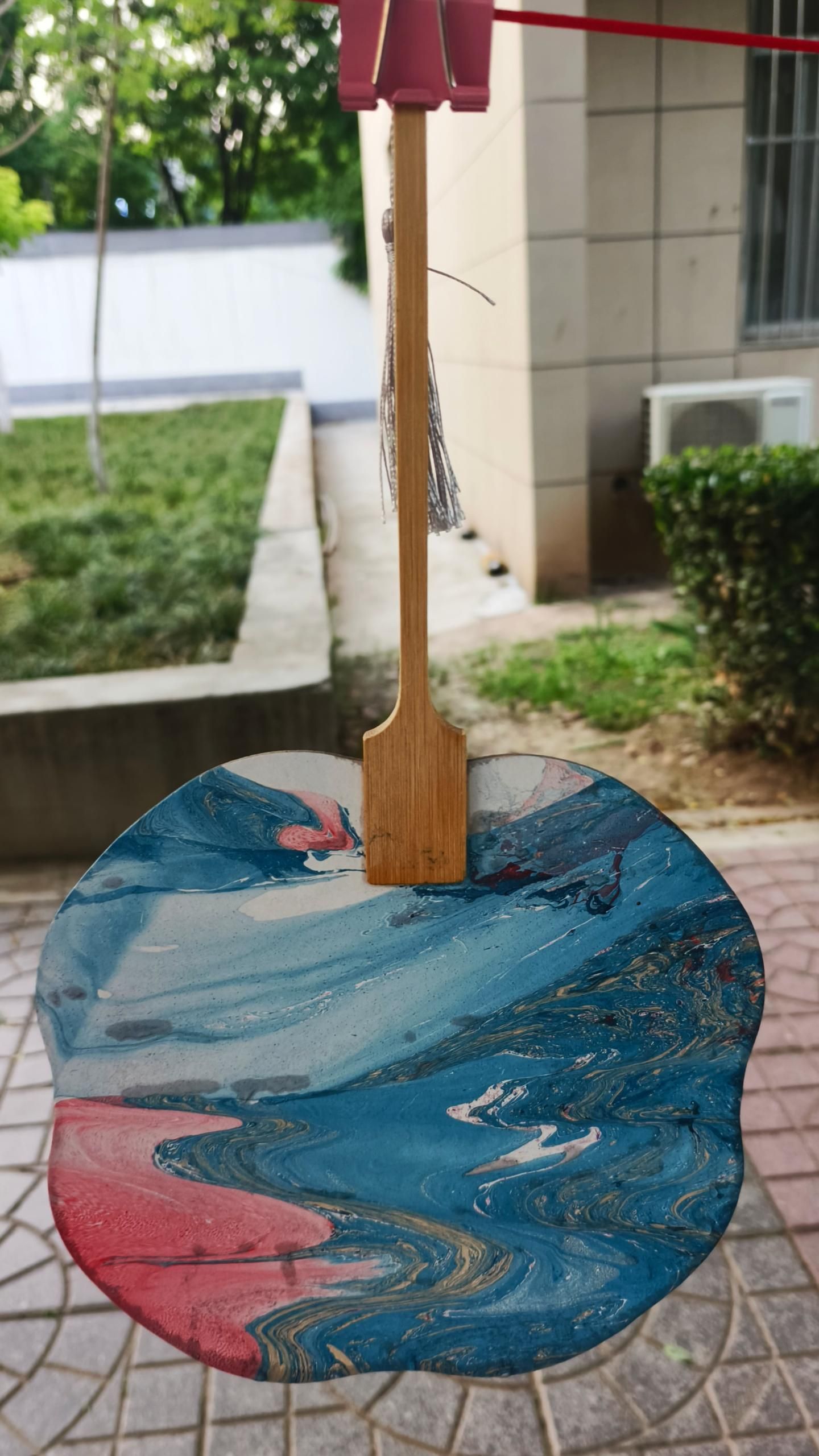 接着,指导老师现场演示了漂漆扇的制作过程。熟练地调色、滴水、旋转扇面,一连串的动作如行云流水般自然。在指导老师的引导下,大学生们纷纷动手尝试,他们或是细心调色,或是轻轻旋转扇面,每个人的脸上都洋溢着专注与喜悦。