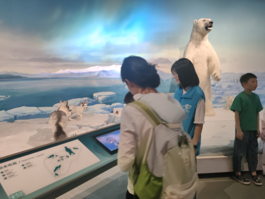 我们的志愿者以饱满的热情迎接每一位访客,引导她们参观自然博物馆,讲解自然博物馆的故事,耐心细致地为参观者讲解每一种动物的生活习性、生存环境和保护现状。他们不仅是知识的传递者,更是环保理念的倡导者,呼吁每一位参观者在欣赏自然之美的同时,也要承担起保护自然的责任。
