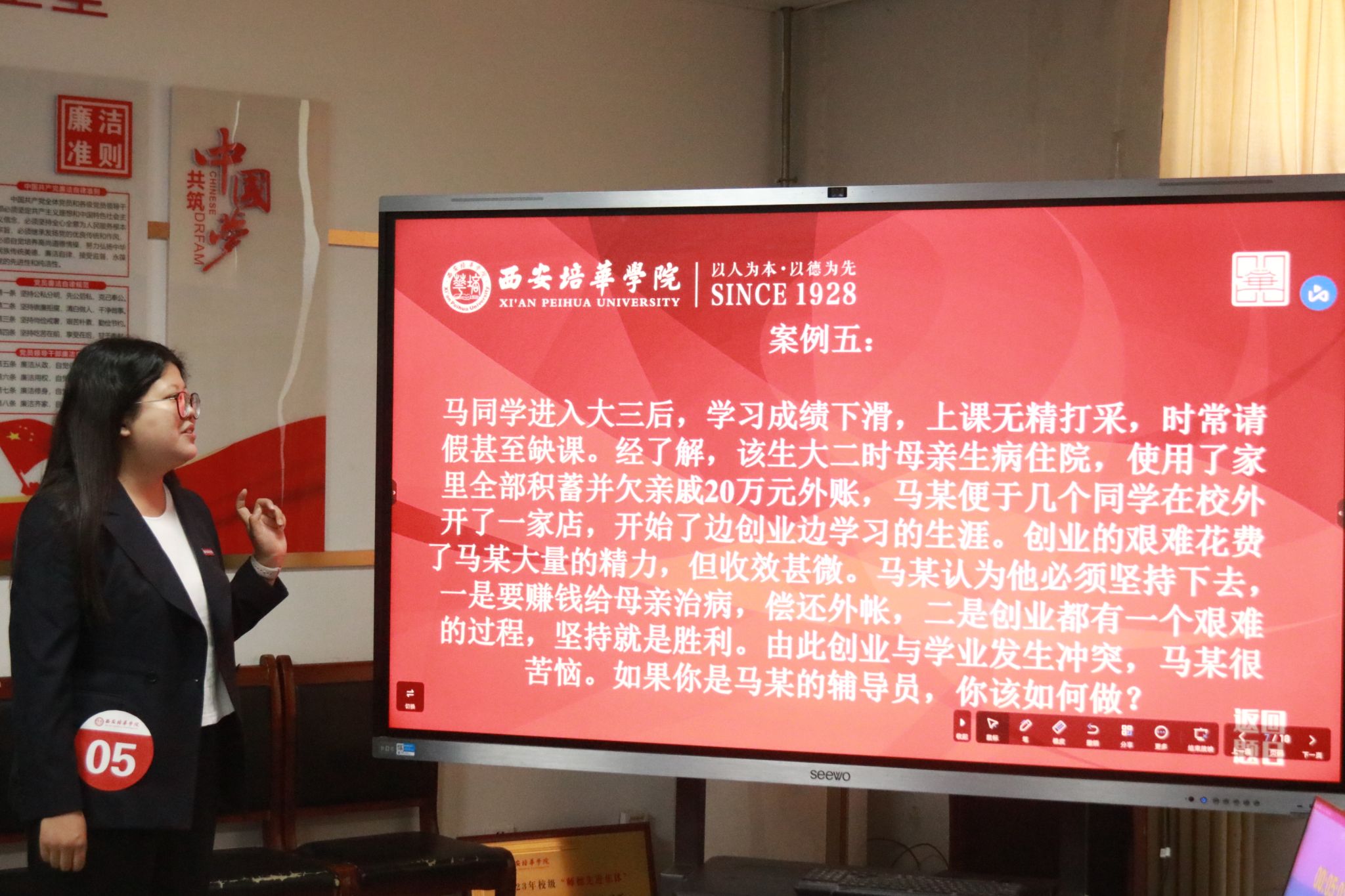 案例分析环节主要考察辅导员综合运用理论分析问题、研判问题、解决问题、应急处理突发危机事件能力。根据赛前抽取的比赛题目,各位辅导员围绕学生案例进行分析,介绍自己的分析思路以及处理办法,与此同时,分享自己担任辅导员工作期间所处理的类似或者相关育人案例。