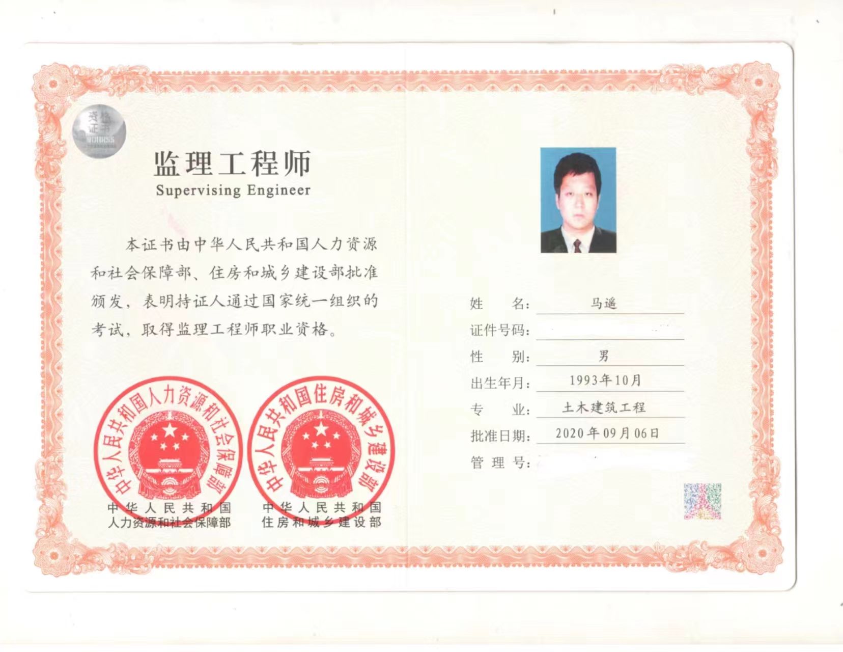 参加工作8年以来,马遥先后参加和主持了多项工程:2015年7月份毕业在陕西川建建筑工程公司担任技术员,参与嘉丰国际城住宅小区项目;2018年1月份在古都工程咨询公司交大创新港项目但任专业监理工程师负责土建及部分安装工程;2020年10月在中昕国际项目管理公司未央城投信息中心EPC项目负责土建工程;2021年6月参与西安交通大学创新港系列改造工程;2022年4月担任延安新区大健康产业园区市政道路建设项目总监理工程师。