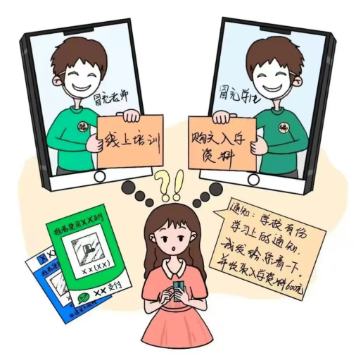 不法分子冒充学校老师、同学,假以学校名义建立新生QQ、微信群,随后以进行线上培训活动、购买入学资料等名义实施诈骗。