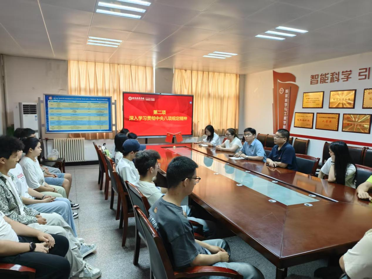 院统战委员杨锦老师带领大家原原本本学习中央八项规定内容并结合学院工作实际,强调:“中央八项规定精神是改进作风的重要遵循,我们不仅要将其内化于心,更要外化于行,在民族工作开展中严守纪律红线,以扎实作风为少数民族同学办实事、解难题,让每项关怀都落到实处。”通过深入学习研讨,全体人员进一步强化纪律意识、改进工作作风,确保座谈会务实高效,为推动学院民族工作高质量发展凝聚共识、夯实基础。