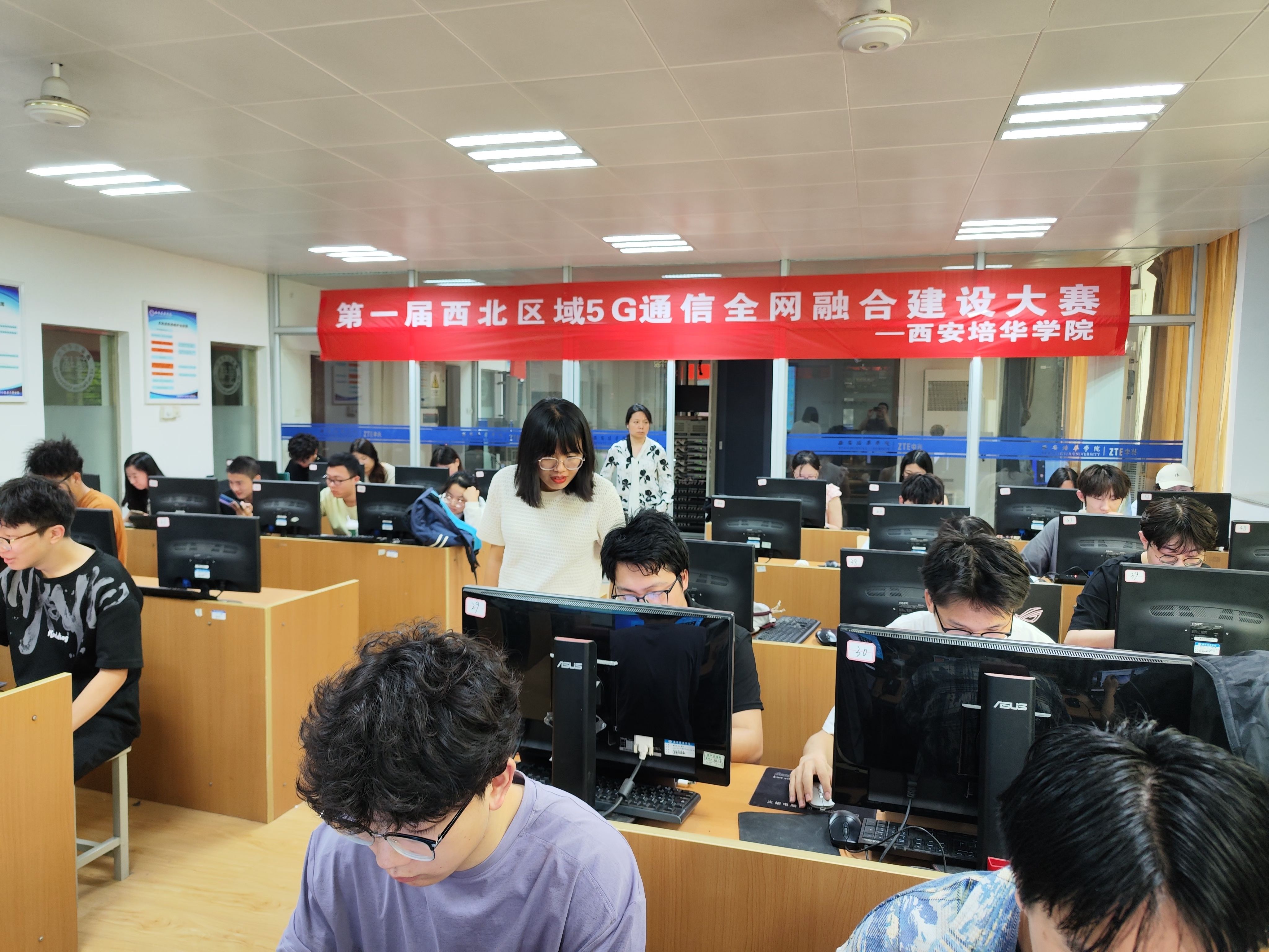 第一届西北区域5G通信全网融合大赛西安培华学院赛点于202551783012003116举行。本次大赛是由陕西省通信学会主办,西安科技大学通信与信息工程学院、西安理工大学自动化与信息工程学院联合承办,南京柯姆威公司提供仿真平台支持。有西北区域的西安科技大学、西安工业大学、西安培华学院等20多所高校参加。