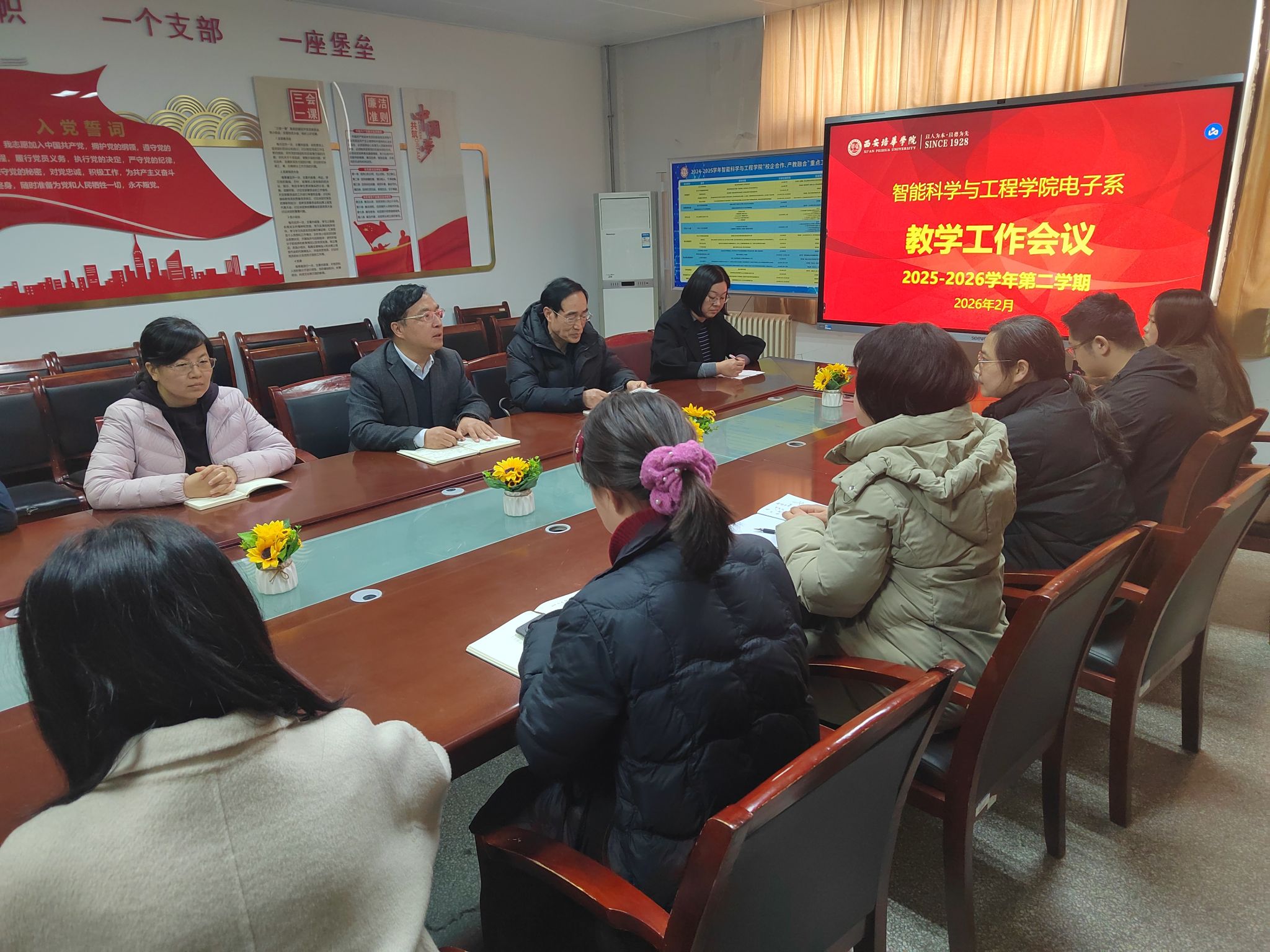2026228日,智能科学与工程学院电子系在学院会议室召开2025-2026学年第二学期第一次教学工作会议,会议由系主任徐进老师主持,全面部署新学期各项重点工作。电子系全体教师参加会议。