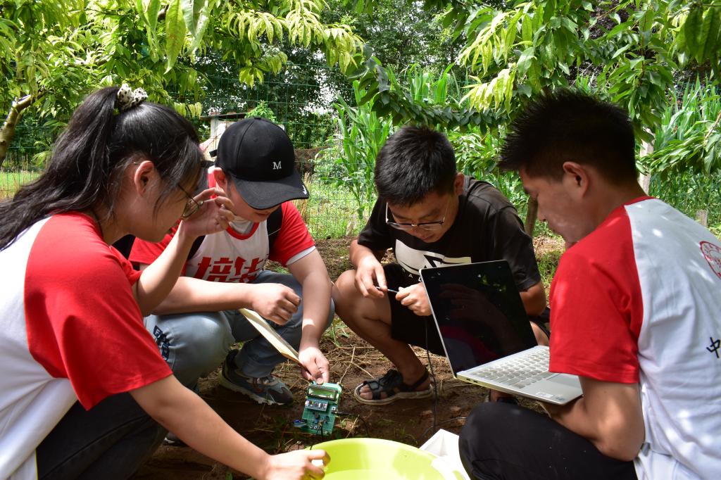 实践队队员走进农村,由师生团队对农民们进行培训和指导,走入当地农田,帮助当地居民农耕工作,同时进行实地考察,修改预想系统,通过当地实地考察后,进一步实地试验与调研最终进行改进。