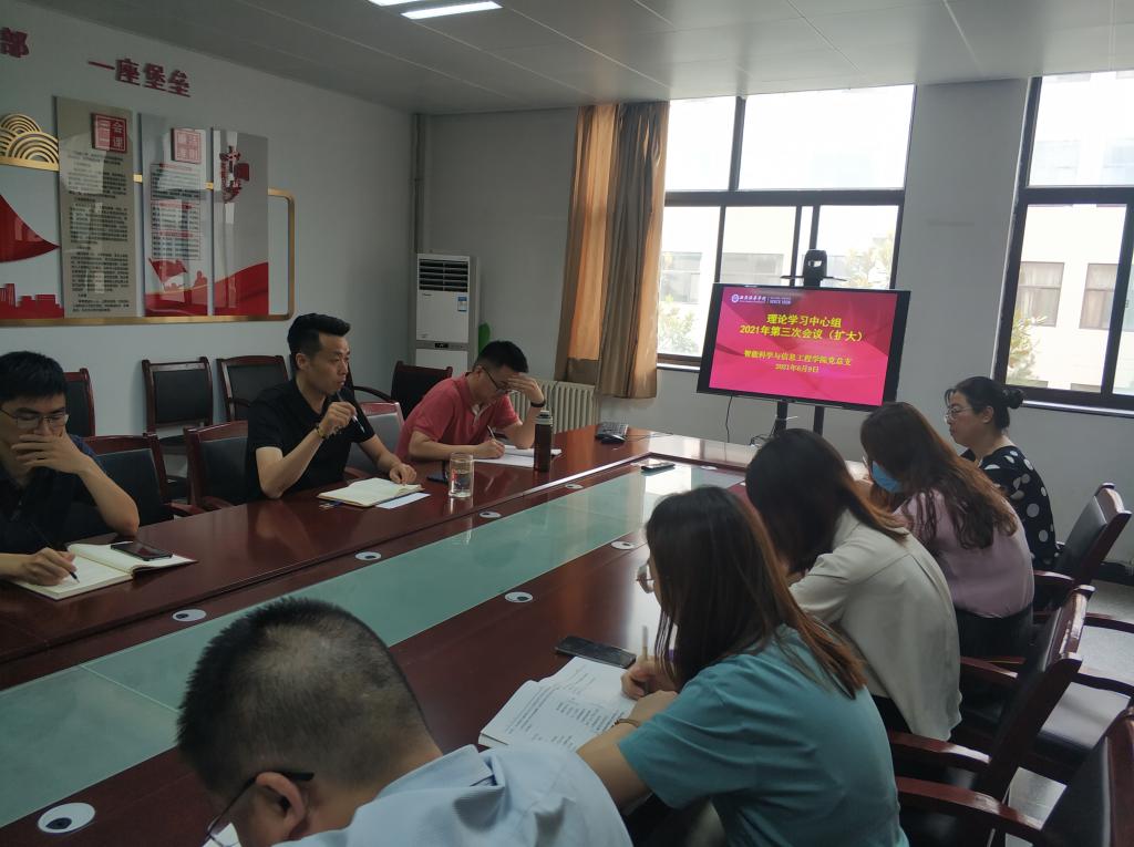 6月9日下午,智能科学与信息工程学院党总支在院党员活动室召开学院党总支理论学习中心组(扩大)2021年第三次会议,本次参会的有理论中心组全成员、各支部书记、委员、院团委书记等,南兵书记主持会议。
