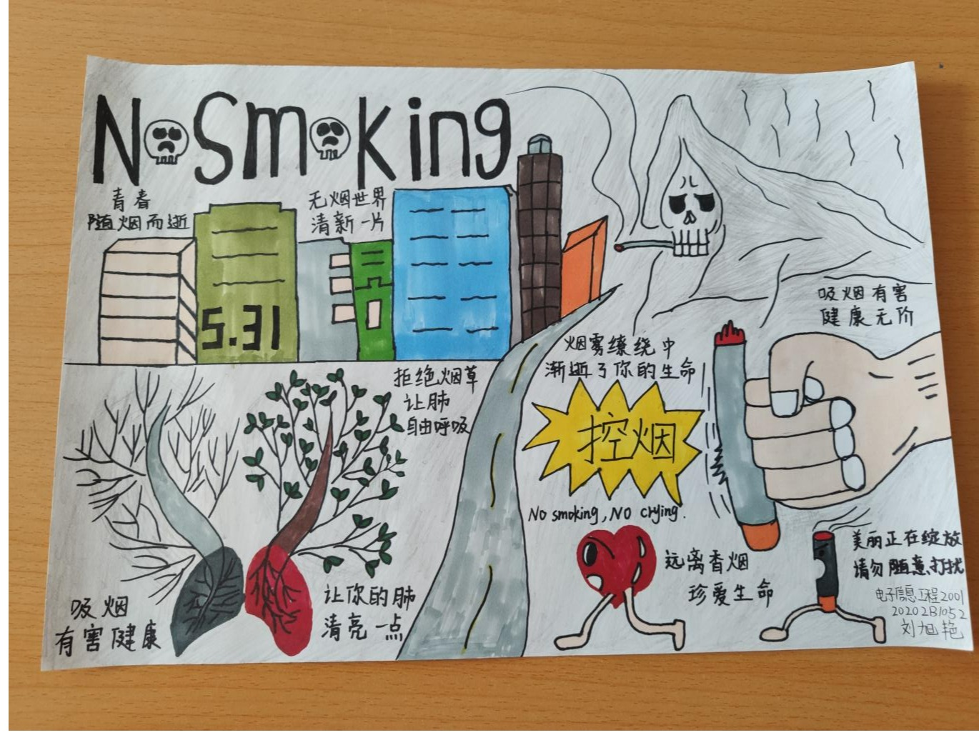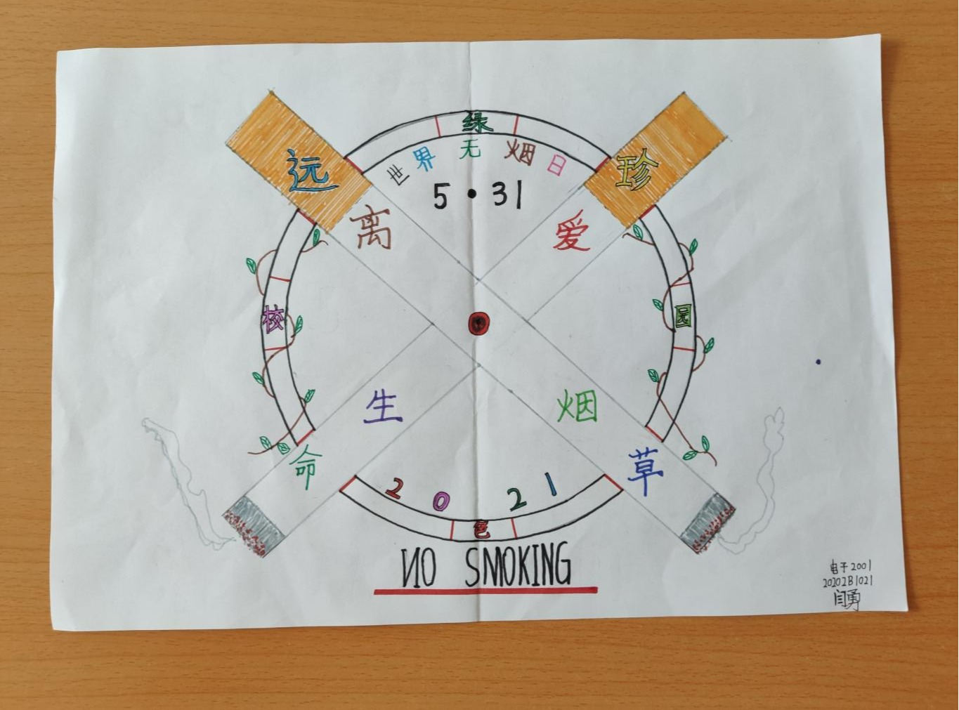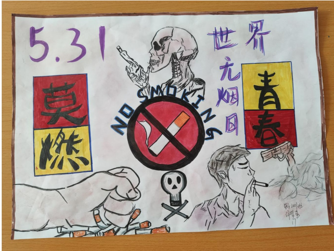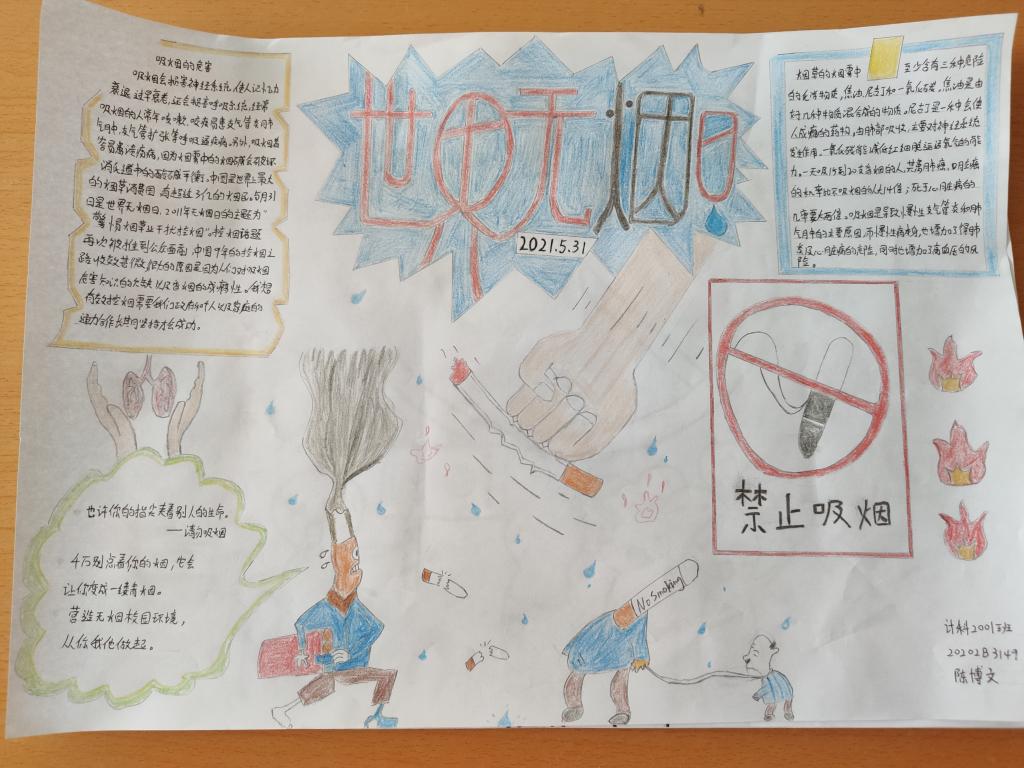 烟草依赖是一种慢性疾病,烟草危害是世界最严重的公共卫生问题之一,吸烟和二手烟问题严重危害人类健康。2021年5月31日是第34个世界无烟日。为加大控烟宣传和健康教育力度,智能科学与信息工程学院青年志愿者协会开展了以“远离香烟,珍爱生命”为主题的征集画稿活动。