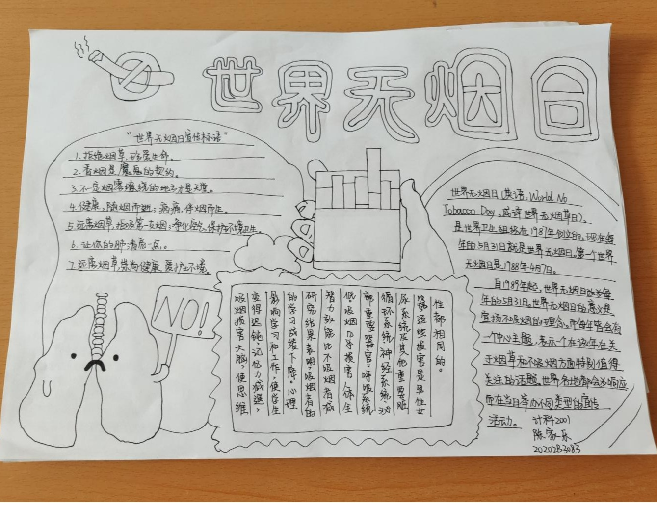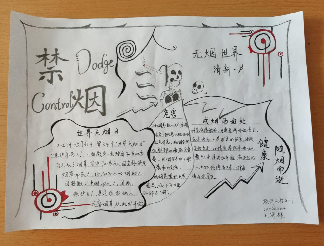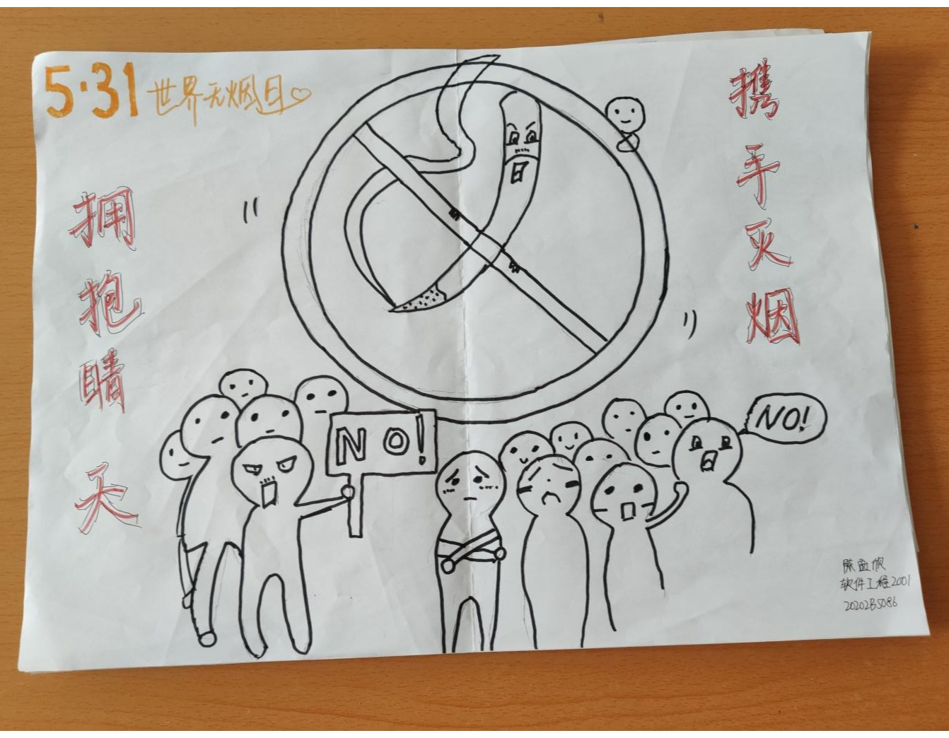 烟草依赖是一种慢性疾病,烟草危害是世界最严重的公共卫生问题之一,吸烟和二手烟问题严重危害人类健康。2021年5月31日是第34个世界无烟日。为加大控烟宣传和健康教育力度,智能科学与信息工程学院青年志愿者协会开展了以“远离香烟,珍爱生命”为主题的征集画稿活动。