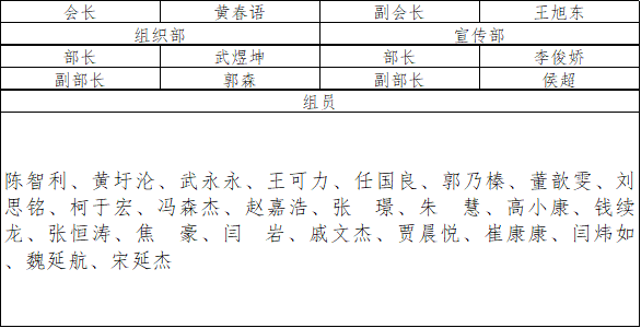 活动结束后,评委老师们也从众多同学中选拔出6名优秀的学员担任协会各个职责,以及其他成员的分组如下: