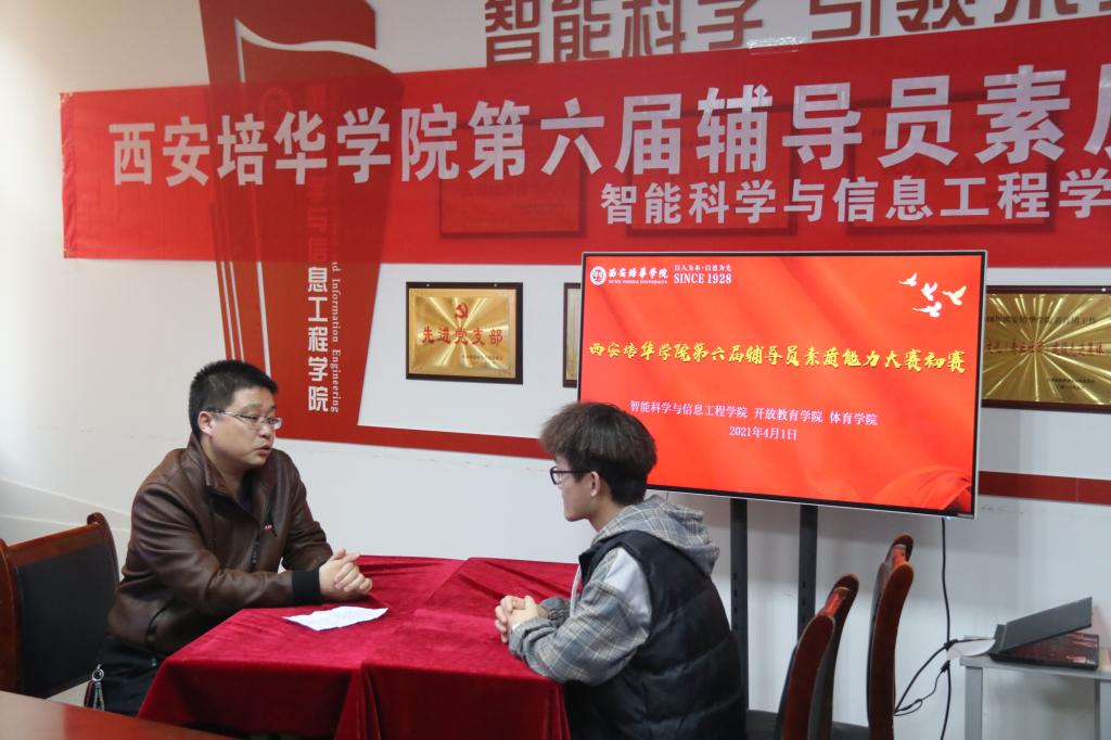 为了深入贯彻党的十九大精神,推动我院高校辅导员职业化、专业化发展,提升辅导员的职业技能和工作水平。达到了以赛促学、以赛促建、以赛促管、展示风采、提升技能的目的。2021年4月1日在育英楼党员活动室成功举行了第六届辅导员素质能力大赛初赛。
