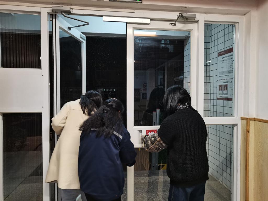 3月14日晚,我院团委部分干事进入学生宿舍楼,主动请缨,与宿管阿姨互换身份,承担她们的工作,体验她们的生活。从监督查寝开始,保证学生出行秩序,引导学生遵守学校规章制度,有序“刷脸”。并在当晚十点半熄灯之际,帮助宿管阿姨进行楼层巡查,确保淋浴房无人,最后和宿管阿姨一起完成锁门工作。